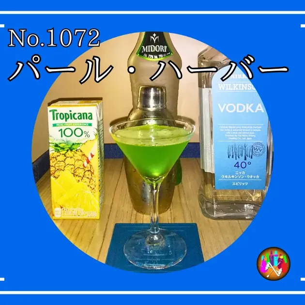 - ミドリ(メロンリキュール)30mlとウォッカ15mlとパイナップルジュース15mlをシェイカーでシェイクする