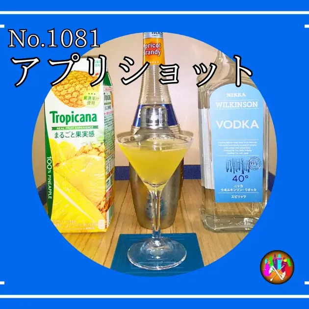 - アプリコットブランデー10mlとウォッカ40mlとパイナップルジュース20mlをシェイカーでシェイクする
