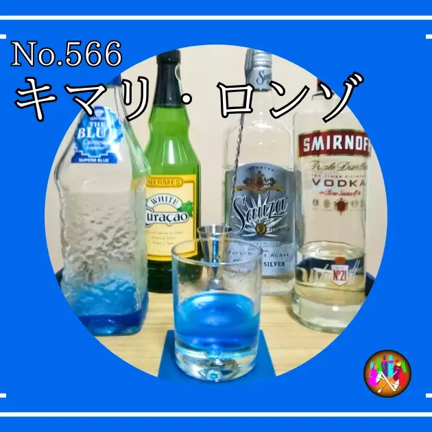 その強さを、強いアルコール度数のお酒で表現して、彼の得意とする青魔法のイメージをブルーキュラソーで表現しました。
