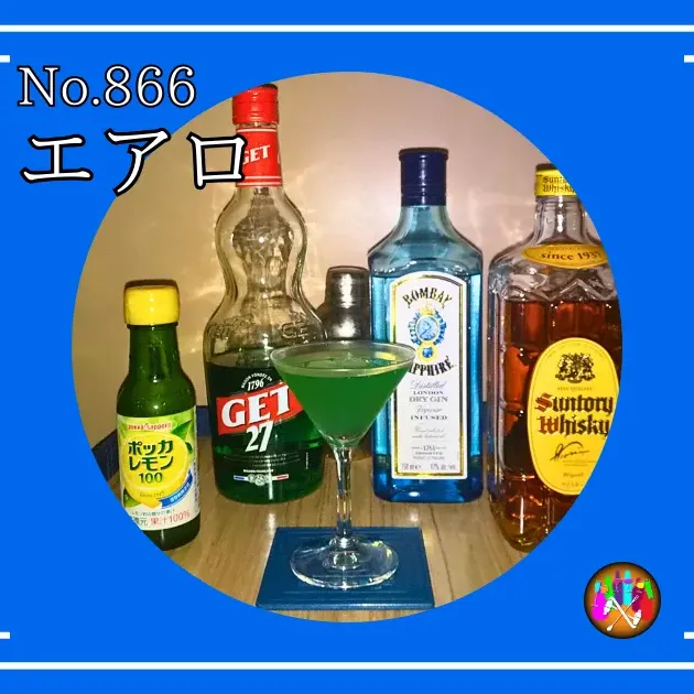 - ウイスキー15mlとジン15mlとペパーミントグリーン30mlとライムジュース15mlをシェイカーでシェイクする