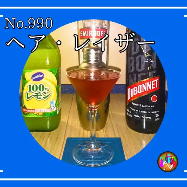 - ウォッカ45mlとデュボネ30mlとレモンジュース5mlをシェイカーでシェイクする